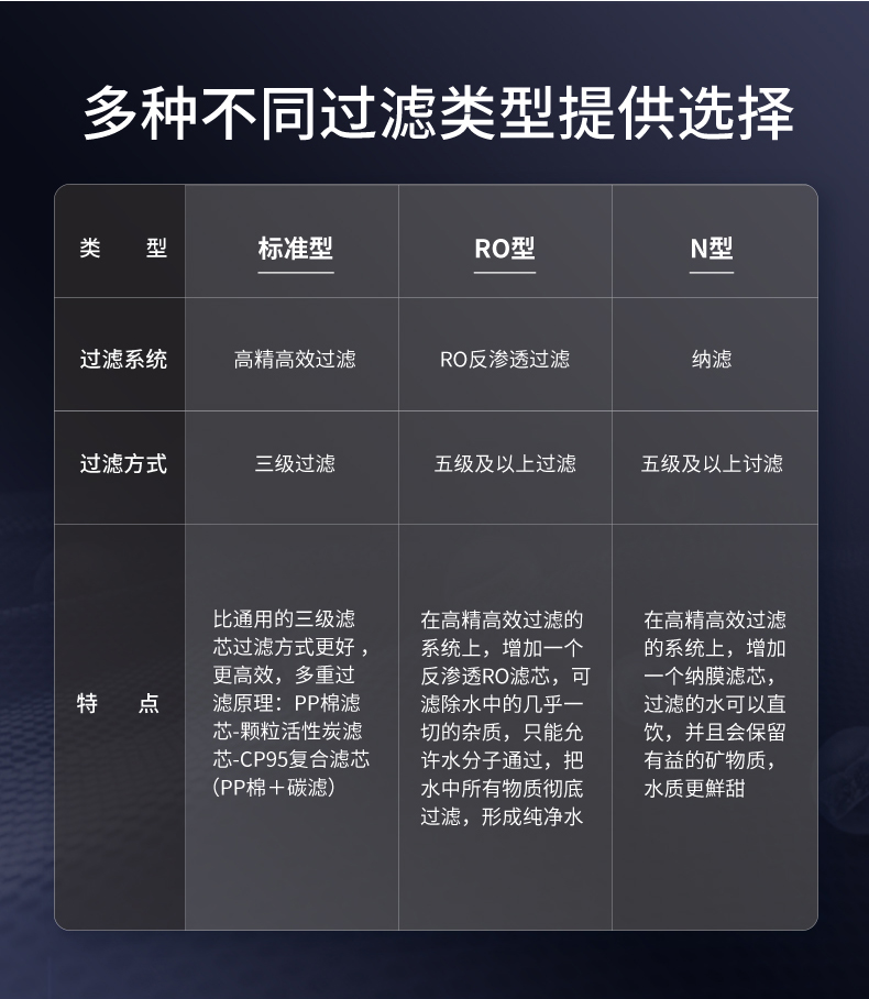 此款外觀三種不同過濾配置對(duì)應(yīng)貨號(hào):